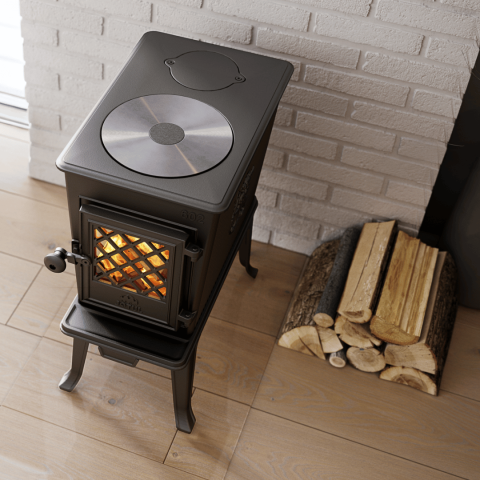 Vurder en vedovn med kokeplate, som gir mulighet for enkel matlaging i krisesituasjon.