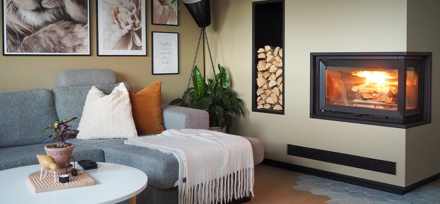 Som utdannet interiørdesigner har Karoline god teft på hvordan den nyoppussede stuen med ny peis skulle se ut. Med god hjelp fra en Jøtul-forhandler i nærheten falt valget på peisinnsatsen Jøtul I 620 FR - en stor peisinnsats med glass på to sider som passer utmerket godt i hjørner. Med en peisinnsats står du i tillegg ganske fritt til å kunne designe din egen peisløsning. Mulighetene er mange i forhold til størrelse og glass på flere sider av peisinnsatsen samt vednisje og fargevalg av peisen.