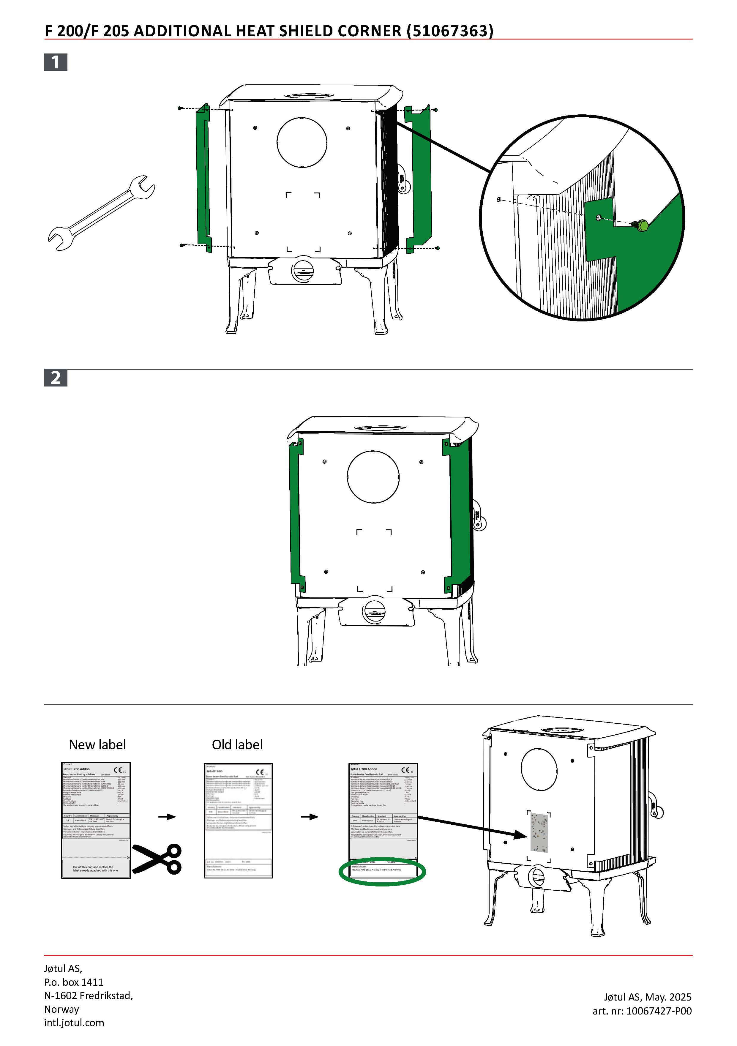 ✅ Nye produksjonsmodeller, Jøtul F 200 V2 / F 205 V2, har oppdatert varmeskjold, og nye avstander på oppstilling til brennbar vegg.