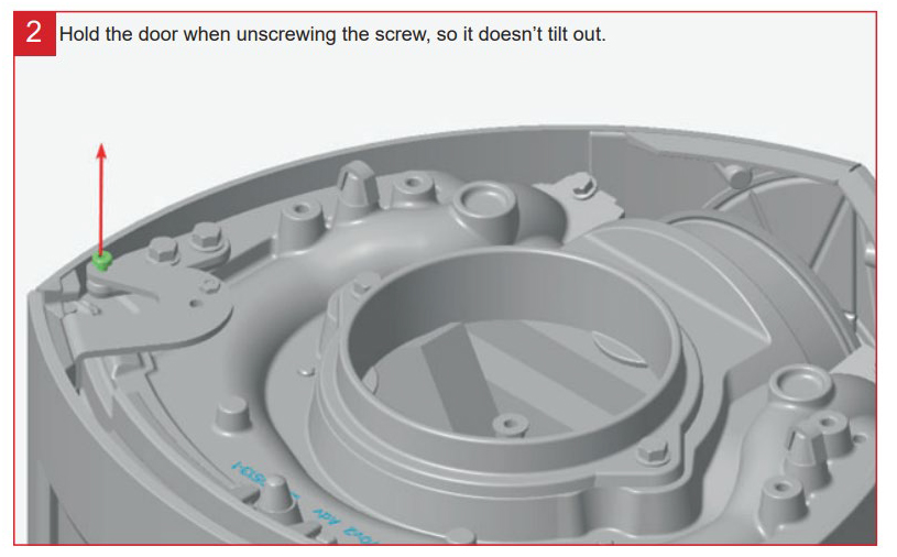 2. Støtt døren og fjern skruen.