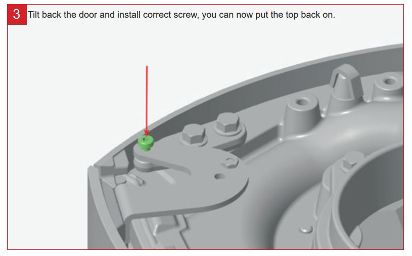 3. Skift skruen og sett topp-platen tilbake på produktet.
