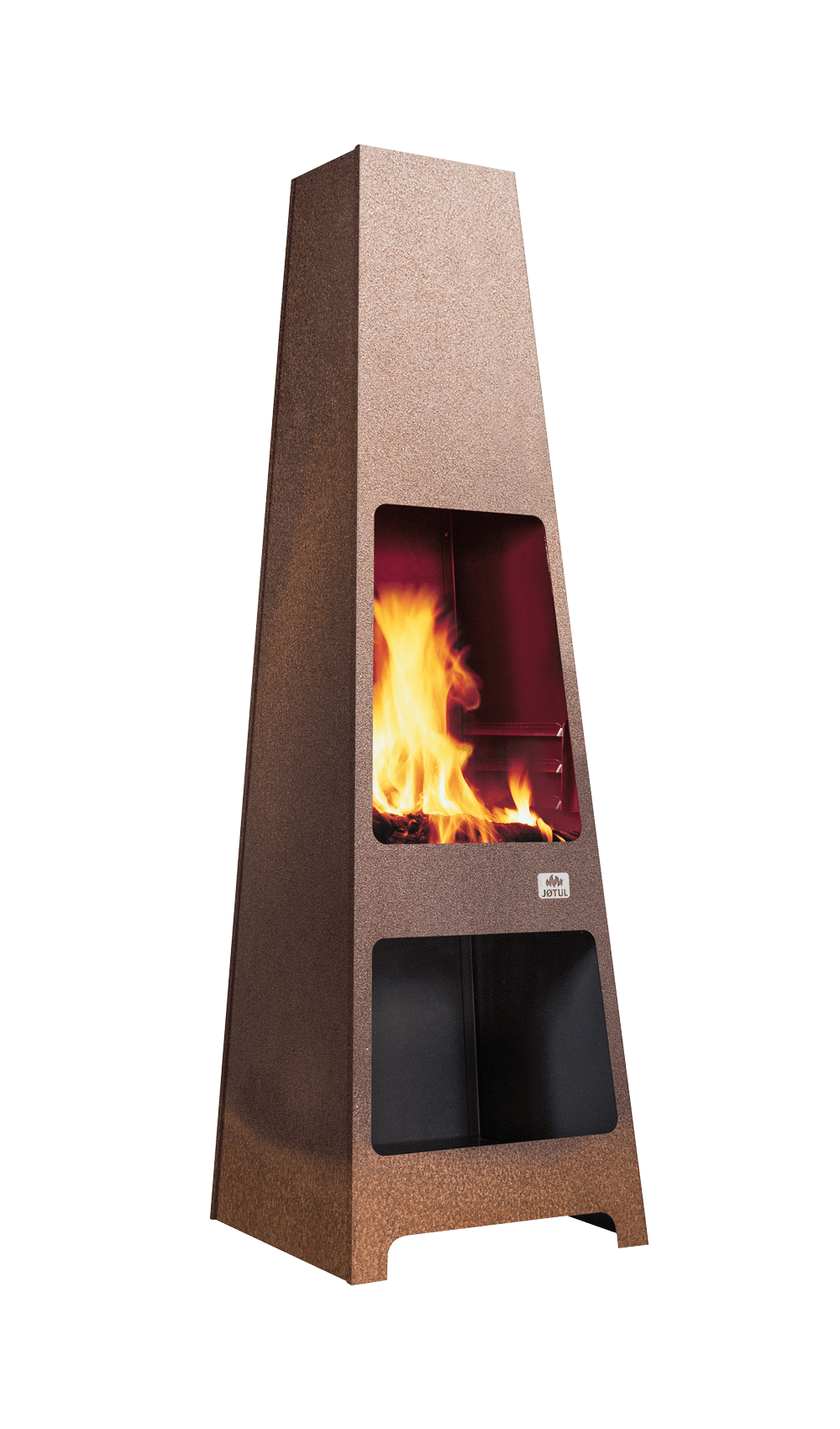 Utepeis i cortenstål som kan brukes ute året rundt. Den er utformet i vedlikeholdsfritt cortenstål, som gir en rustet og røff overflate. Utepeisen varmer godt, og skaper en stemningsfull og koselig atmosfære til langt ut på kvelden. Brennkammeret er opphøyd, slik at du får god utsikt til flammene. Sokkelen har et praktisk rom for oppbevaring av ved og opptenningsutstyr. En praktisk grillrist fås som tilleggsutstyr, som gjør det mulig å bruke utepeisen som grill. Gnistfanger og underlagsplate fås også som tilleggsutstyr. Utepeisen må plasseres på et ikke-brennbart materiale.