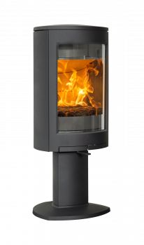 Funksjonell og moderne vedovn i støpejern. Vedovnen har en praktisk hylle for oppbevaring av ved i sokkelen, og ergonomisk dør med 'Stay'-funksjon, som sørger for å holde døren åpen når du skal fyre opp, eller legge i ved. Vedovnen har luftspyling som bidrar til renere glass. Den er også utstyrt med én ventil for optimal fyring og opptenning, samt en smart askeløsning for enkel tømming av aske. Har du ønske om å kunne se flammene fra flere vinkler i rommet får du dreiesett som tilleggsutstyr.
