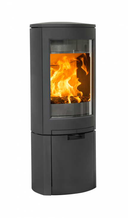 Moderne vedovn med smarte funksjoner som gir lavt vedforbruk, rene glass og miljøvennlig forbrenning. Vedovnen er utstyrt med en ergonomisk dør med 'Stay'-funksjon som holder den åpen ved ilegg av ved, samt en praktisk askeløsning for enkel tømming av aske. I tillegg har den luftspyling som bidrar til renere glass. Sokkelen med dør i støpejern skjuler et rom som er perfekt for oppbevaring av mindre opptenningsved, eller utstyr som opptenningsbriketter, peisvott og lighter. Ønsker du å kunne se flammene fra flere steder i rommet, kan et dreiesett fås som tilleggsutstyr.