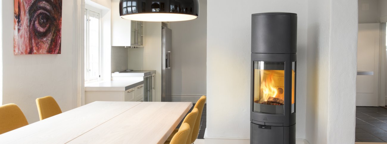 Høyreist, elegant og varmelagrende vedovn
