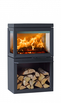 Stor vedovn som varmer godt. Vedovnen kan plasseres på base tilpasset vedovnens spesifikasjoner og dine interiørønsker. Den har en rekke praktiske funksjoner som en stor og bred kokeplate på toppen til matlaging, med plass til flere kjeler samtidig. Brukervennlige luftventiler gjør opptenning og fyring enkelt, og en kubbestopper i brennkammeret og smekklås i døren gir trygg fyring. Med tre glass og lyse brennplater i solid støpejern får du et luftig og flott innsyn til flammene fra flere vinkler i rommet. Luftspyling og coating på glassene gjør det enklere å opprettholde renere glass.